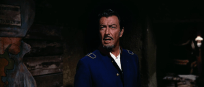 Some decent camera touches and a plenitude of well-done stunts (particularly horse-falls) are the best of slim pickings. Once again cast as a short-tempered officer, Taylor tries but the script is just terrible. Randell and Lawrence overact outrageously, Hardin wastes his time, Monteros is thrown away. The dubbing is poor, the editing jagged, the sound effects are lazy—note: don’t have rifles and pistols make the exact same noise! Also in the cast, and mugging like mad, is German/Javanese exotic dancer/actress Laya Raki, va-vooming wildly as one of the strumpets: she and Randell were married from 1957 until his death in 2005.