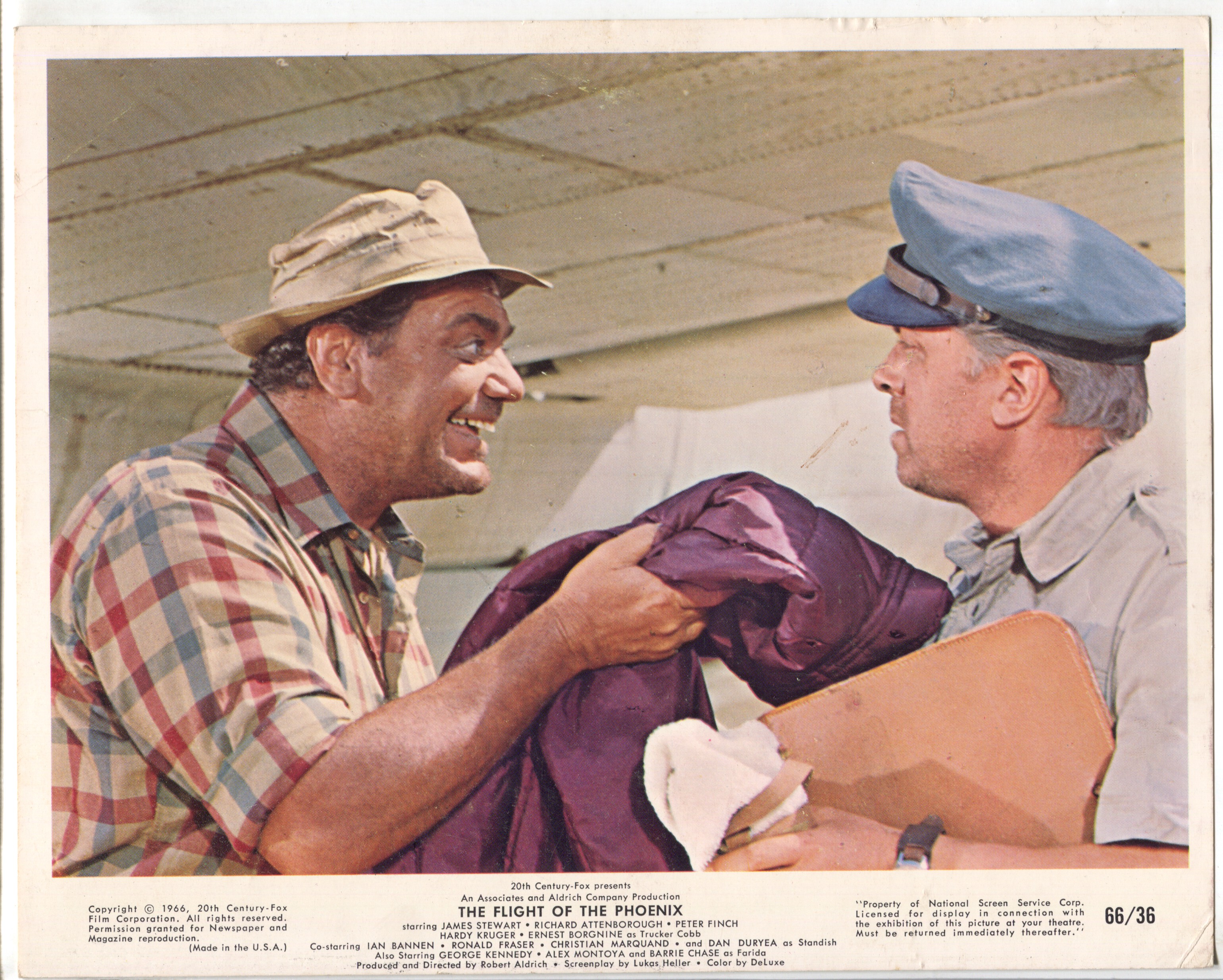 THE FLIGHT OF THE PHOENIX, one of no-nonsense director Robert Aldrich’s best movies, was also an unexpected disappointment at the box office in 1965, coming in just 40th place, the gross of $7,300,000 not enough to salvage the $5,355,000 production tab. It did notch a pair of Academy Award nominations, for Supporting Actor and Film Editing. Critics were out to lunch (with each other) and for some reason audiences didn’t turn up for a number of the year’s fine adventure movies: even more ignored than this ace entry were Mister Moses, A High Wind In Jamaica, The Naked Prey and Sands Of The Kalahari. *