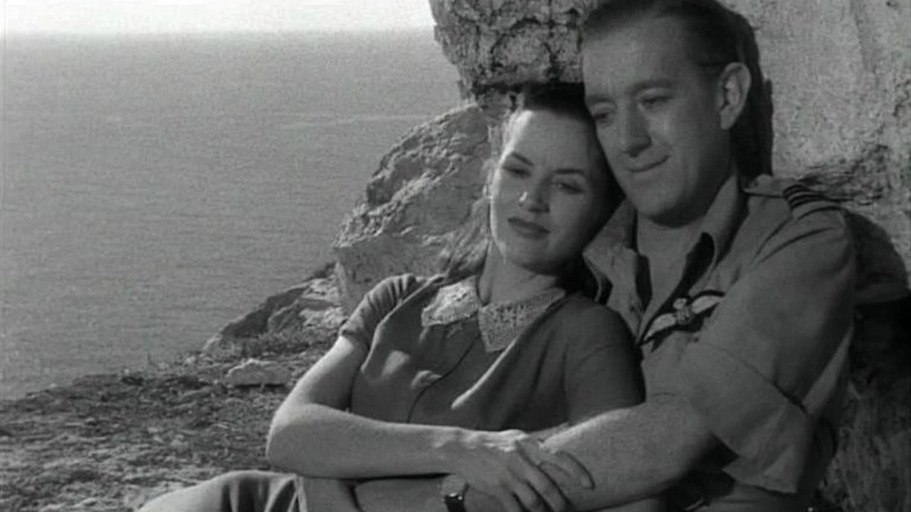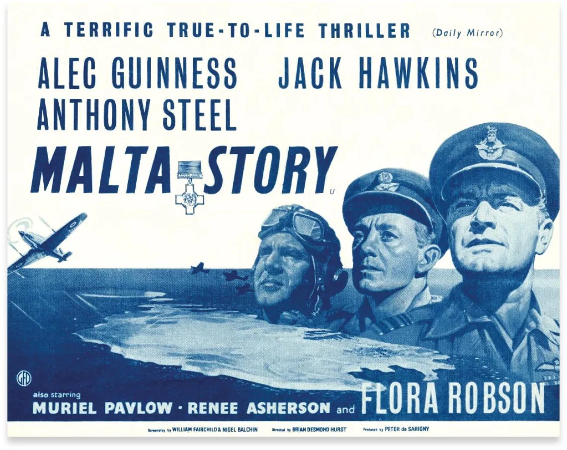 1942. En route to Egypt, ‘Flight Lieutenant Peter Ross’ (Alec Guinness) is stranded in Malta when his plane is blasted during a refuel stop. ‘Air Vice Marshal Frank’ (Jack Hawkins) makes use of Ross as a photo reconnaissance pilot. In down time between his skillful missions filming enemy convoys and troop movements, Ross meets and instantly falls for ‘Maria Gonzar’ (Muriel Pavlow, 31), a local who serves in the RAF operations room. While their romance blossoms and he gets to know her family, Axis attacks continue, and Malta’s situation remains dire.
