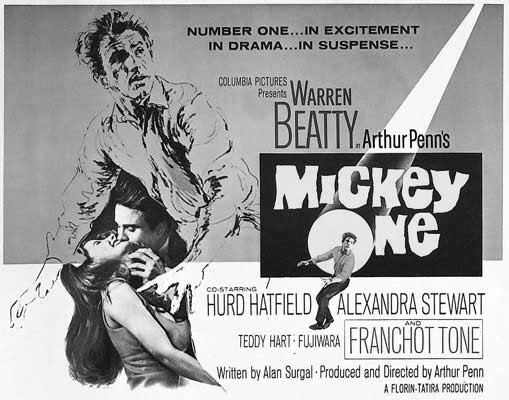 MICKEY ONE is unfortunately not a Mantle, Rooney or Mouse situation, the kind that brings you to your feet with a switch-hit home run, dazzles with innate chutzpah from a pint-sized dynamo or provokes tossing out poisoned cheese after an ethics lesson from a cheerful rodent. Instead,temples are rubbed over the case of a Beatty, Penn & Surgal (no, not a bill-boarded personal injury law firm) aping of French New Wavy angst about corrosive Capitalism, fragmented individualism, the ego-creed complex, and who knows what else?—cue the sum-up from Warren (star) about Arthur’s (director) wrestle with Alan’s (writer) fever-dreamed theme teem: “We had a lot of trouble on that film, because I didn’t know what the hell Arthur was trying to do and I tried to find out. I’m not sure that he knew himself.” Now you tell us. Hang on for S.O.L. on steroids in black & white closeups, a gallery of in-your-face grotesques deliberately designed to be off-putting (thus securing niche appeal with some) in 93 minutes that are just one Mickey from a platoon of joy kills that assaulted 1965. *