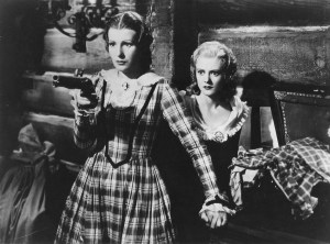 Many of the year’s historical flicks hold up well, but this one creaks with age, with stiff and dated acting, simplistic dialog, a cheesy score from Roy Webb and stagy action sequences that are only moderately effective. Scott, 38, was moving up in popularity; this genial but sure-shootin’ outdoorsman portrayal helped usher in the leathery westerner persona (even though he was a courtly Virginian) he’d be most identified with. Bonnie Barnes doesn’t do a lot for the pioneer in me; pretty Heather Angel fares better as ill-fated Cora. As in Cleopatra and The Crusades, Wilcoxon is stolid, Cabot grunts and glares as Magua—“Want pale-faced squaws“; he may as well be a satire. Barrat and Reed fail to convince.