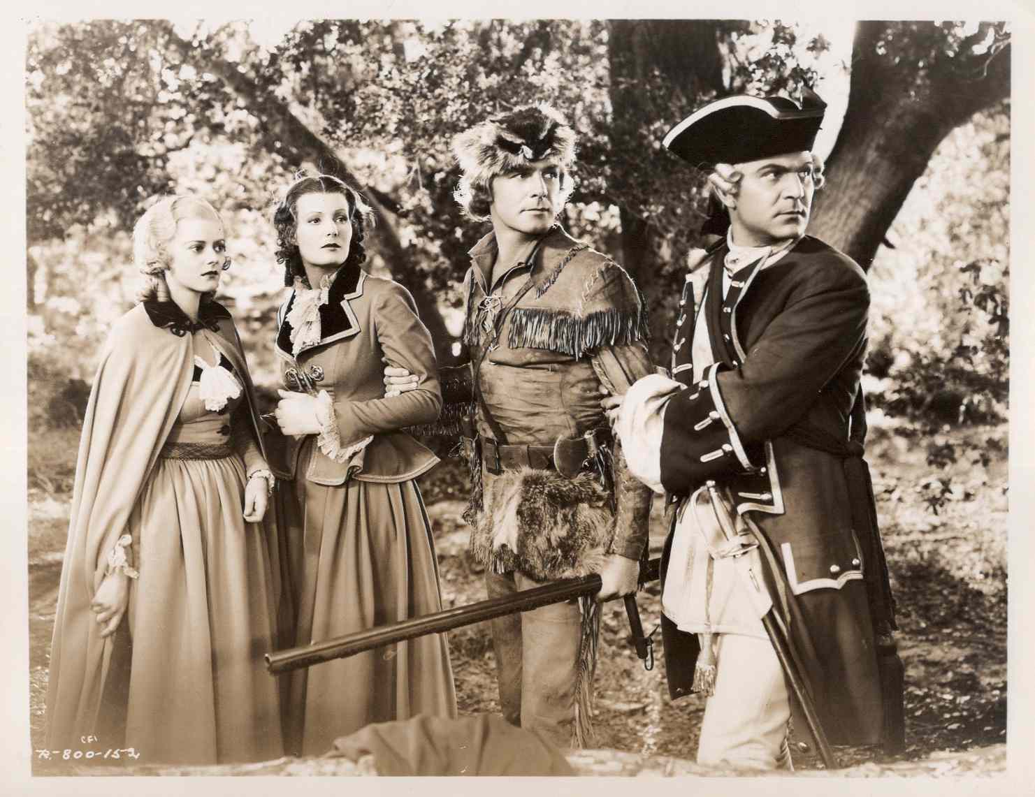 Many of the year’s historical flicks hold up well, but this one creaks with age, with stiff and dated acting, simplistic dialog, a cheesy score from Roy Webb and stagy action sequences that are only moderately effective. Scott, 38, was moving up in popularity; this genial but sure-shootin’ outdoorsman portrayal helped usher in the leathery westerner persona (even though he was a courtly Virginian) he’d be most identified with. Bonnie Barnes doesn’t do a lot for the pioneer in me; pretty Heather Angel fares better as ill-fated Cora. As in Cleopatra and The Crusades, Wilcoxon is stolid, Cabot grunts and glares as Magua—“Want pale-faced squaws“; he may as well be a satire. Barrat and Reed fail to convince.