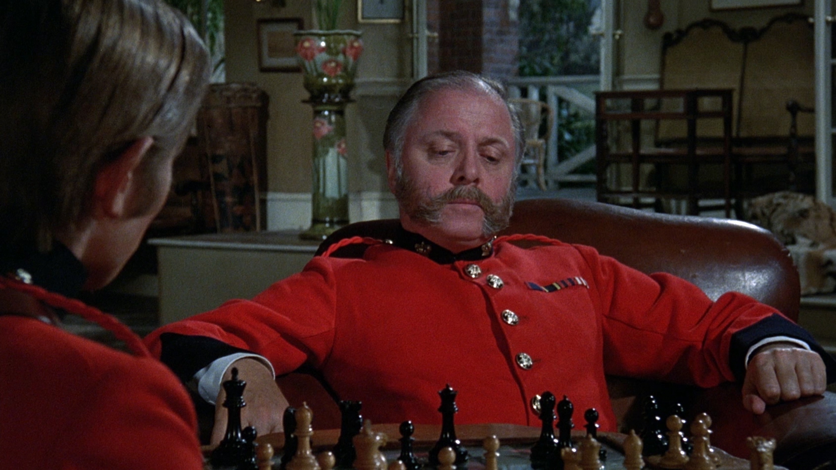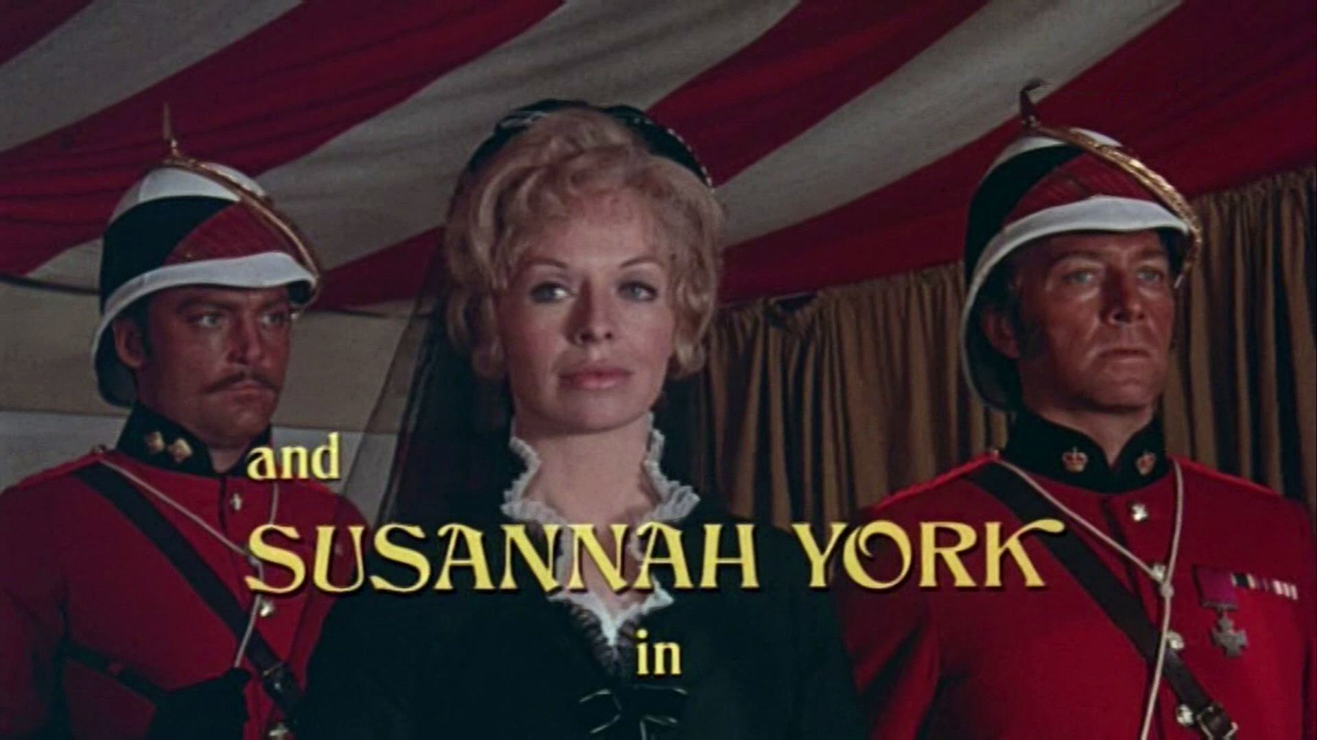 India, 1878. This time around, trouble in the Crown’s Jewel comes not from stealthy Thuggees, unruly maharajahs or ever-restive tribesmen but from inside the garrison of a particular regiment of Lancers. ‘Mrs. Marjorie Scarlett’ (Susannah York), widow of a hero, is violently assaulted at a party. Mind you, this outrage comes not from some lout in the ranks, but from one of the officers, a class and breed who live by a severe and venerated code of honor. She accuses ‘Lt. Millington’ (James Faulkner), an arrogant newcomer. To keep scandal from damaging the regiment, a private court martial is held, and Millington’s idealistic fellow newcomer ‘Lt. Drake’ (Michael York) is ordered to defend him. Millington’s an ass, which doesn’t help, while complicating the case is the lady’s history of being a coquettish tease who’s favored by the rest of the fellows.