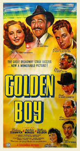 GOLDEN BOY was a big deal on Broadway in 1937, Clifford Odet’s most famous play running 250 performances and featuring new talents like Frances Farmer, John Garfield, Lee J. Cobb, Elia Kazan and Howard da Silva. Columbia Studios laid down a hundred grand for the rights with the idea of a Frank Capra vehicle starring Jean Arthur. Capra decided to make Mr. Smith Goes To Washington instead and so Rouben Mamoulian directed the 1939 adaptation that was fashioned by a quartet of screenwriters. He lobbied for a frosh in the lead role, a fella who’d had two unaccredited bit parts, and thus won 20-year-old William Holden his first starring role. Pros Barbara Stanwyck, 31, and Adolphe Menjou, 48, smoothly took the other leads, and Cobb was brought along from the play, albeit in a different role.