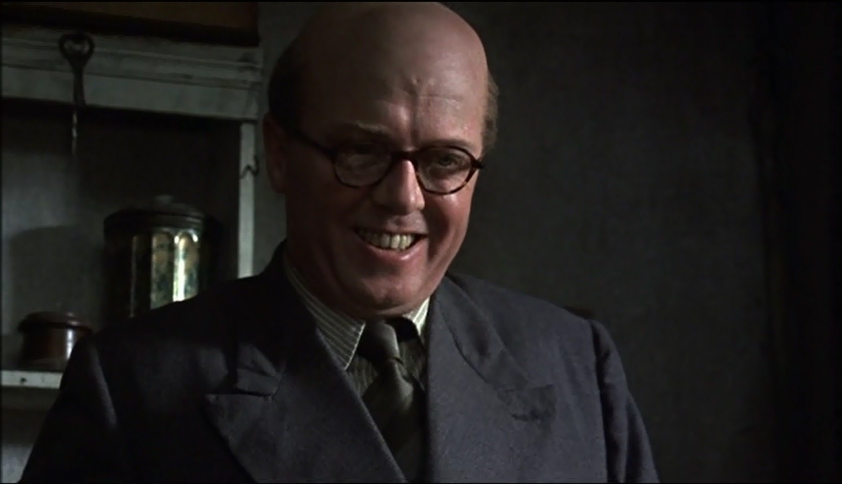 Front & center is Attenborough’s self-satisfied creep, his measured underplaying, aided by effective makeup, avoids flamboyant excess and as such, the blithe remorseless carries a more chilling punch. At 47, his acting career now moving from in front of the camera to behind it (he next directed his second film, about a vastly bigger man, Young Winston) he had long proven himself able to go full-on crackers; this portrait of amiability masking maleficence was preceded by his warped figures in Brighton Rock and Seance On A Wet Afternoon and later in Conduct Unbecoming.