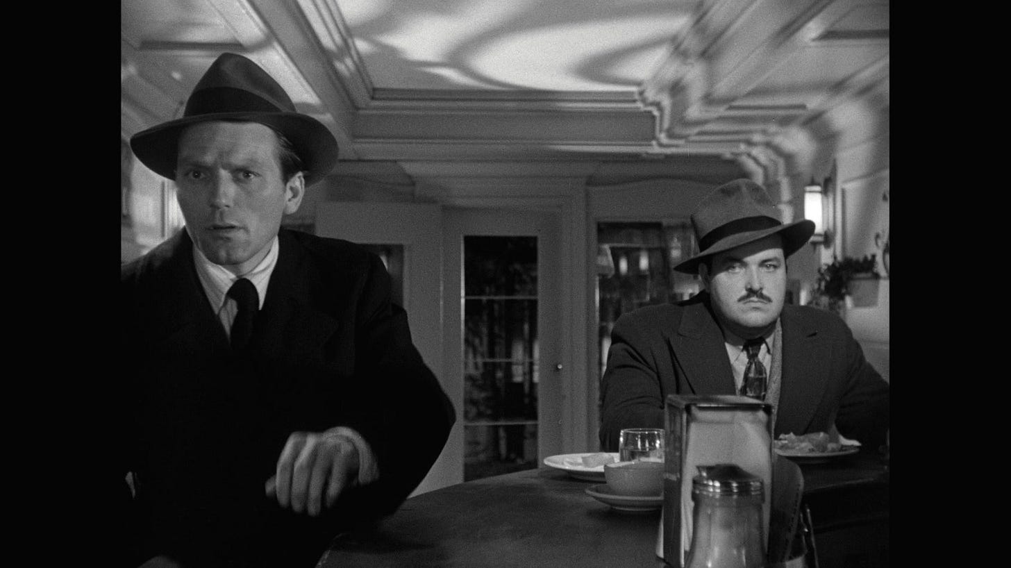 Bracing from frame one, the story launches off the arrival of a pair of surly hoods (William Conrad, 25, first credited part, and Charles McGraw) in the New Jersey nothingburg of Brentwood, amusing themselves by intimidating people at a diner as they seek out ‘Pete Lund’ aka “The Swede”, with intent as ominous as their attitude. Later, bloodhound insurance investigator ‘Jim Riordan’ (Edmond O’Brien), assigned to locate Swede’s beneficiary, begins to piece together clues about those who knew the departed and what it was they knew him for and over.
