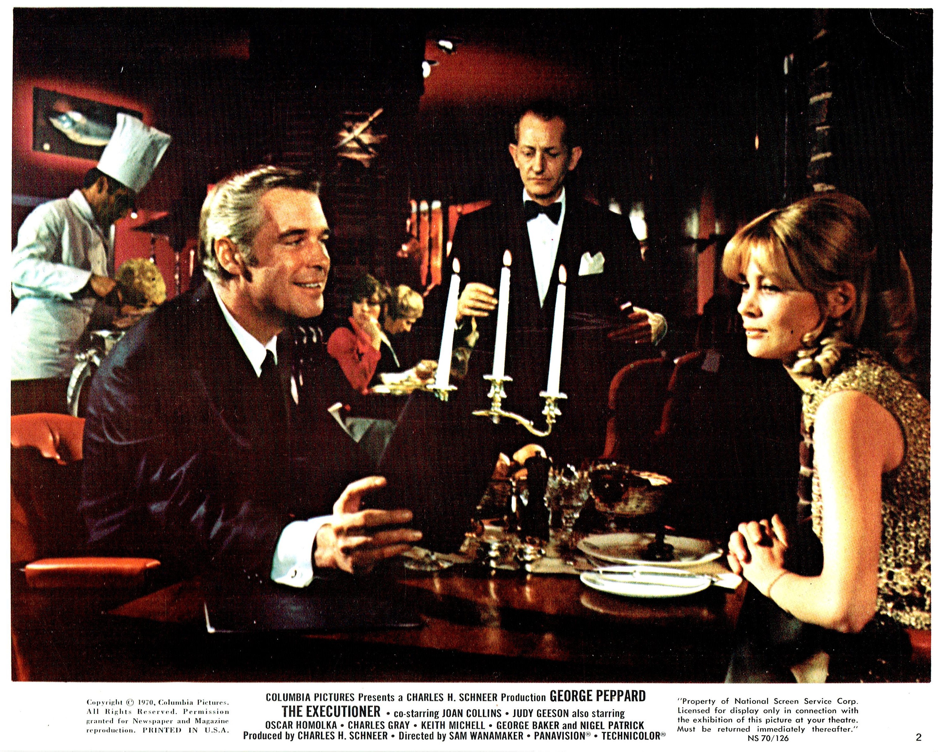 British Intelligence agent ‘John Shay’ (Peppard, 41) goes after a fellow operative suspected of being a double-agent for the Soviets (remember them?). The trail leads from England to Greece, involving getting deceived and pummeled along the way, and also is complicated by his dalliance with the suspect’s wife (Joan Collins), even as he maintains playtime with his current girlfriend (Judy Geeson). Peppard’s obvious Yank accent is explained away (repeatedly) by his having been raised in the States. Along with the beguiling ladies (both better than their thinly conceived roles), further authentic Brit assistance (the snippy/snide sort) is offered by redoubtable stuffy types such as Charles Gray and Nigel Patrick. Good old Oscar Homolka appears briefly as a Russian source of info and innuendo.