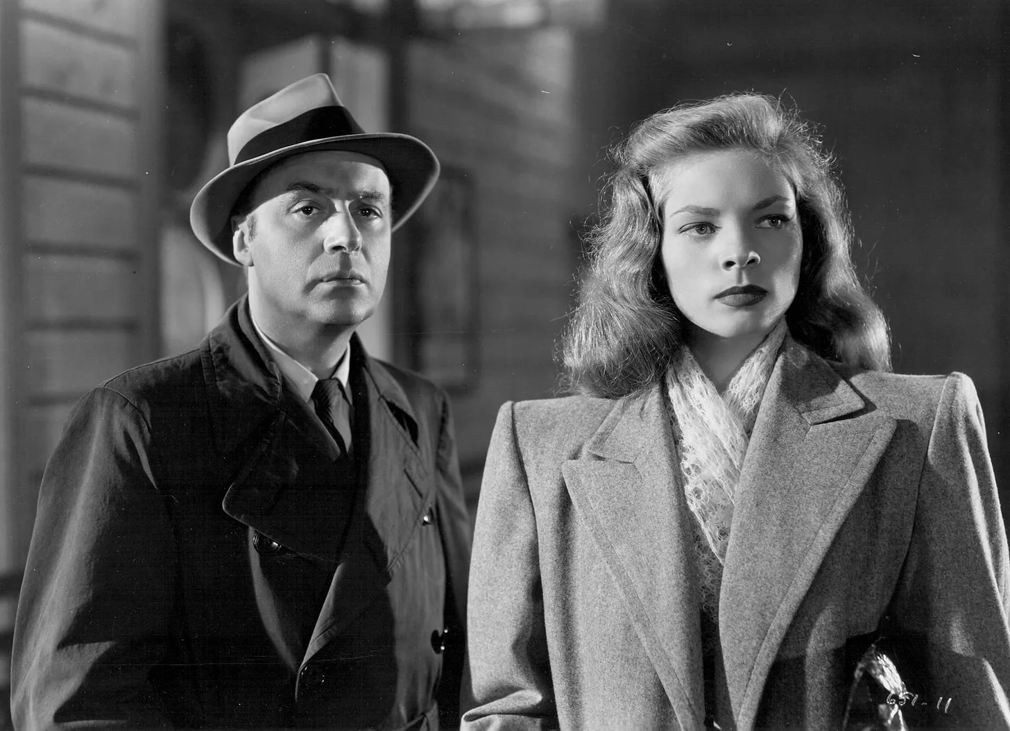 Herman Shumlin directed, Robert Buckner (Dodge City, Yankee Doodle Dandy) wrote the screenplay. Shumlin was a long established Broadway producer and director who’d scored a big hit two years earlier with his first film project Watch On The Rhine. After Confidential Agent, he abandoned movies and returned to the stage with continued success. Apart from failing to coax a convincing performance from the badly miscast and unready leading lady, Shumlin did well by his assignment; the rest of the cast, their script and the production details mesh most effectively. Bacall—who had pleaded not to be cast in the part—recovered from withering notices—she’s dire on a Jill St. John level—and rapidly improved. **
