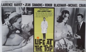 LIFE AT THE TOP has the perks of money and position but they’re not enough to satisfy reactively acidic and perennially insecure ‘Joe Lampton’ (Laurence Harvey) in this bleak yet surprisingly well-done 1965 sequel to the 1959 classic Room At The Top, which had kicked off Britain’s raft of ‘kitchen sink’ dramas, won Simone Signoret an Oscar, and made Harvey a star. Three years after it came out its author John Braine published a sequel, then three more years after that came this movie adaptation, scripted by Mordecai Richler, who’d helped write the earlier film. Ted Kotcheff directed. We’re clued in early about Joe and ‘Room‘ when someone snarks that “He was clever enough to knock-up the boss’s daughter in days gone by. And that, mate, is real social security.”