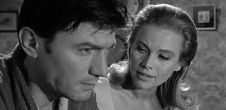 It takes a while to engage, but as the arguments sharpen and characterizations deepen, the relentlessly grim drama draws you in; the acting is excellent. Room At The Top saw Harvey Oscar-nominated, and playing bitter, or at least harsh, characters was his go-to strong suit (The Alamo, BUtterfield 8, The Manchurian Candidate, The Running Man); he updates Joe’s trap-caught dilemmas quite well. Simmons, 36, replaced Heather Sears from the first movie and is keen-edged, although she’s innately more glamorous than Sears (Susan was a mousy part). Goldfinger had just zoomed Blackman, 39, from national familiarity (Brit TVs The Avengers) to international immortality (“I must be dreaming“) but regrettably 007 fame didn’t result in many good roles afterwards. She’s smart and compelling here’ any chance to watch Honor act is a pleasure.