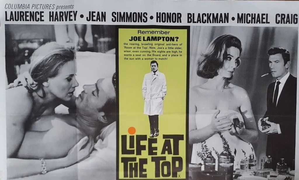 It’s ten years after we left Joe Lampton, poised and poisoned closer to ‘the top’ of the heap in the British factory town of ‘Warnley’, married to the daughter of ‘Abe Brown’ (Donald Wolfit, back from the earlier movie), industrial bigwig and town mayor. Up from nothing, Joe works for Abe, drives a Jaguar and lives in a comfortable estate with his wife ‘Susan’ (Jean Simmons) and their two young, spoiled children. Except for their little girl, no-one is happy. Joe and Susan bicker constantly and engage in affairs, Susan with Joe’s married friend ‘Mark’ (Michael Craig), Joe with TV host ‘Norah Hauxley’ (Honor Blackman). Numbing security on one end, possible escape on the other, with a chance at politics thrown in by his domineering father-in-law, Joe has crucial decisions to make.