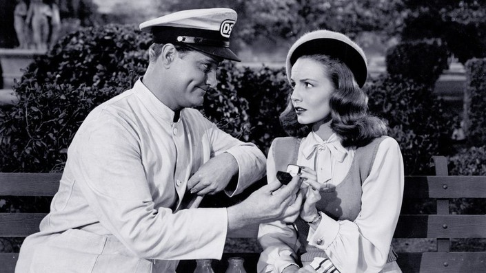 Monumentally clumsy ‘Red Jones’ (Skelton, 35) gets fired from his job as a street cleaner, latest in a long line of employment fiascoes. His loyal sweetheart ‘Ann Eliot’ (Blair) is getting near the end of her rope with his dopiness but helps him get a job as a door-to-door salesman with the Fuller Brush company, where she works as a secretary. During his valiant attempts to get one of his two left feet in the door, Red stumbles across a racketeering operation, and becomes an unwitting (his supply of wits limited) suspect in a homicide. Can Red convince Ann he’s innocent? Will she help him defeat the bad guys? Wild guesses are allowed.