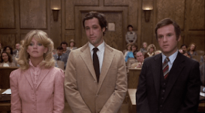 California. Divorced writer ‘Nick Gardenia’ (Chase) is kidnapped from his isolated pad in Big Sur by a pair of bank robbers who use him as a forced accomplice in a holdup. Ejected (at velocity) from their getaway car, he makes his way to the home of his ex-wife ‘Glenda’ (Hawn), now happily married to ‘Ira Parks’ (Charles Grodin), a D.A. poised to become the State’s Attorney General. Banged up from his tumble (a stuntman took one heckuva rolling fall down a hillside) and with his mug on camera from the stickup, Nick beseeches help from Glenda, and tirelessly tries to re-woo her in the bargain. She rebuffs that while trying to stash him from the cops (and her husband), but sympathy weighs in, as well as duty—she’s a defense attorney.
