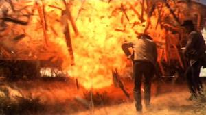 The beautifully lit cinematography from Conrad Hall (The Professionals, Cool Hand Luke, In Cold Blood, The Day Of The Locust) mined autumnal texture yields from vistas in Utah, Colorado and Mexico (‘no Bolivian locations were injured during the making of this film’). The silly musical intrusions (that—erhgg—song, and ridiculous jazzy riffs with some Bolivian cavalry) are irritating (others no doubt find them sweet and/or hilarious) but not so much they derail the spirited enterprise. If The Great Escape was the war movie for people who don’t like them, you could make that case for this picture and folks who don’t go for westerns. For we genre stalwarts the show gets a B+ pass thanks to pals Paul & Bob, and a number of memorable scenes. These include the great cliff jump escape, the excess ka-booming of the safe on a train and the final gun battle. There’s nothing like going down fighting against overwhelming odds to stir up whatever Spartan chromosomes may be lurking in your otherwise pacifist DNA—They Died With Their Boots On, The Alamo, Spartacus, The Wild Bunch, Saving Private Ryan—a safe way for couch patriots/rebels/weenies to ‘be there’ without doing it for real.