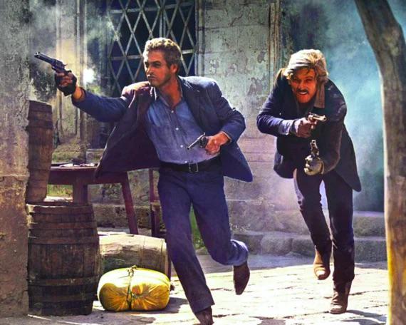 The first laugh comes at the end of the opening credits with”Most of what follows is true.” William Goldman’s clever script, George Roy Hill’s able direction (apart from allowing the score) and the glove-fit casting deliver a good many more over the course of the sorta true tall telling, until it wraps up on an elegiac note of lament with a heroic rush into echoed volleys of federales rifles. As the 19th-century ticked out, the Old West was ending its days, and the misadventures of its legendary outlaws. Robert Leroy Parker aka ‘Butch Cassidy’ and stickup/stick together/stick-it-out pal Harry Longabaugh aka ‘the Sundance Kid’ were in their early 40s when they met their end on Nov.7th, 1908, in a town in Bolivia. They’d made news and nuisance down there for eight years after scampering out of the States with galfriend Etta Place, in her late 20s when the boys went to glory, her life afterwards wreathed in mystery. Up north, Butch had led a crew variously dubbed the ‘Hole-In-The-Wall-Gang’ and ‘the Wild Bunch’, who hid out in the Big Horn Mountains of Wyoming. The second lusty appellation was seized by the makers of that other 1969 saga about gringo outlaws ending up south of the border, a much wilder bunch indeed, and a much more serious motion picture. *