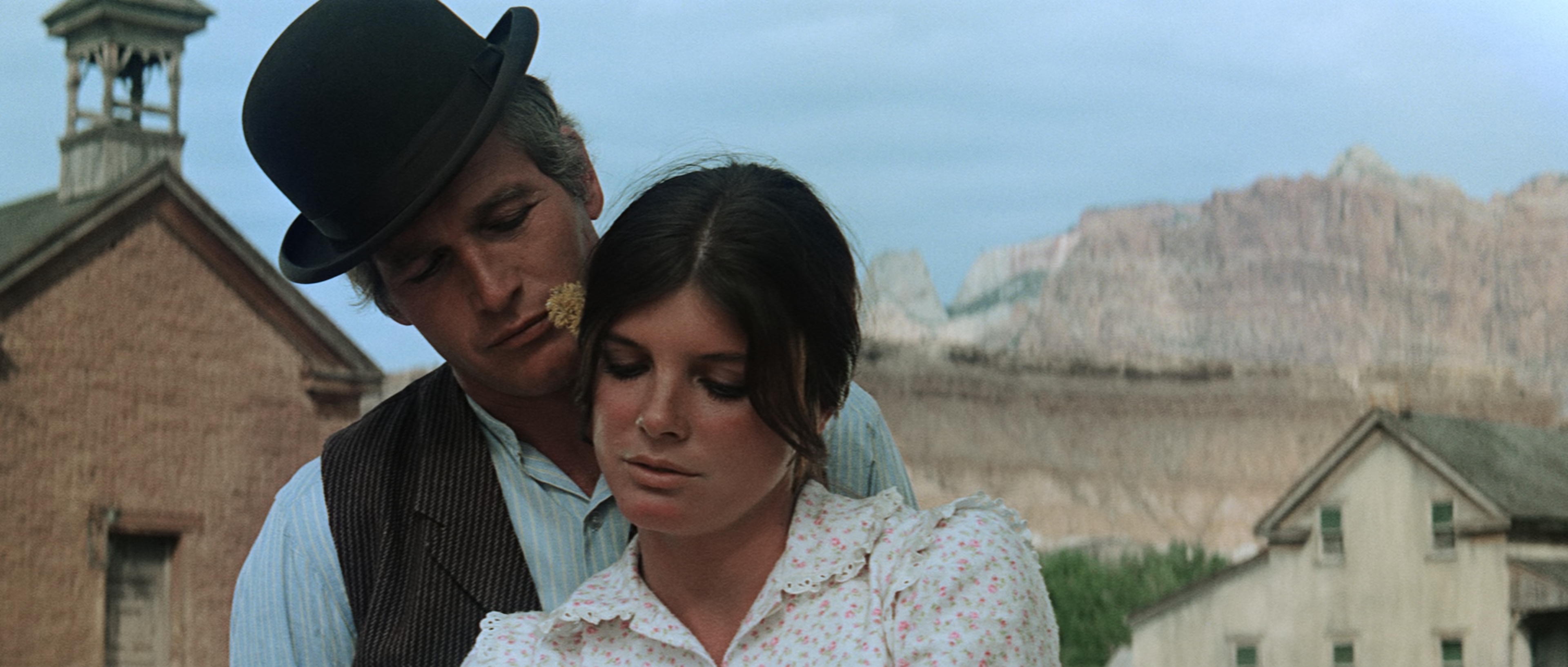 BUTCH CASSIDY AND THE SUNDANCE KID was one of nineteen westerns of one sort of another released in 1969. It isn’t the best—hands down, that’s The Wild Bunch. Enjoyable as it is, many ‘true’ western fans preferred either The Wild Bunch or True Grit, not least due to the ‘cute’ factor in this of-the-moment entry, first and foremost that damned anachronistic music score from Burt Bacharach and the truly insipid warble “Raindrops Keep Falling On My Head”. Go figure, that drop of glop not only became a monster hit, but snagged an Academy Award, as did the Score, two of four Oscar wins, with three more nominations. Though we snort like a grizzled prospector over the awards inclusions (and note that critical response at the time was lukewarm) there is no question that the $6,000,000 show was unarguably a pop culture smash, by far the biggest box office hit of the year. Sour notes now noted, we confer it’s mostly jolly good fun. “You just keep thinkin’, Butch. That’s what you’re good at.”