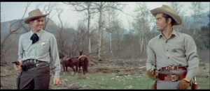 Though the script (Edmund H. North and Joseph Petracca peeling into the novel by Verne Athanas) is a bit overloaded, the pro cast handle it well, and it’s proficiently directed by journeyman Robert D. Webb (Beneath The 12-Mile Reef, Seven Cities Of Gold) who uses the $1,400,000 budget smartly; while the duds and sets are too clean and tidy, he makes sure there’s always some movement or ornament to occupy the CinemaScope framing. Instead of aping other westerns of the era with a title tune-turned-reappearing ballad, composer Lionel Newman came up with a comfortable whistling number, sort of a “rollin’along” precursor to the Ennio Morricone treats that would turn up in the next decade. It even charted fairly well.