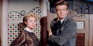 Ryan’s easy authority (notice the cool manly walk) is in play and he was wise enough to finesse the panic scenes when Cass’s eyesight goes haywire and make sure it doesn’t seem fakey-hokey. Mayo is all right, but she has little to do; her character is barely there after the first third. Demoted by 20th in favor of slick schmoozer Robert Wagner, Hunter, 29, is yeoman in a throwaway part; he was much better that year in The Searchers. The supporting cast is stacked: Walter Brennan, Arthur O’Connell, Rodolfo Acosta, George Matthews, Edward Platt, Whit Bissell, Fay Roope, Paul E. Burns (town drunk), Richard Deacon, William Fawcett.