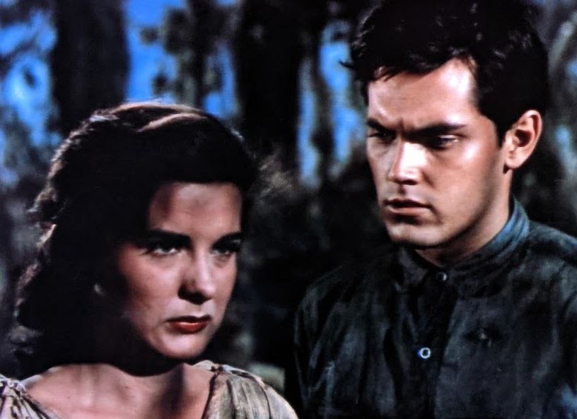 The Technicolor is an obvious bonus, and the dense waterscapes are loaded with critters: big gators, venomous snakes, a panther, a bear, a rogue bull. Robert D. Webb was the uncredited 2nd unit/location boss, Edward Cronjager (Heaven Can Wait, Canyon Passage) the cinematographer. A real plus is the outstanding music score from Franz Waxman, contributing greatly to the mysterious and dreamlike atmosphere of the swamp and the folksy feel in the town scenes.