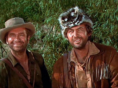 MIKE: “I am the original ringtail roarer from the thunder ‘n lightnin’ country! I’m a real snorter and a head buster! I can out-run, out-jump, out-sing, out-swim, out-dance, out-shoot, out-eat, out-drink…” DAVY: “Out-talk?” MIKE: “Yeah, out-talk, out-cuss and out-fight anybody in the Mississippi and Ohio Rivers put together!”