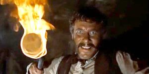 Handsomely shot around riverine locations in Kentucky and Illinois, the show has the same director (Norman Foster), producer (Bill Walsh) and writer (Tom Blackburn) as the earlier episodes-turned-feature but unlike Davy Crockett–King Of The Wild Frontier, which covered authentic sections of his life (albeit in safe kiddie consuming form) this go-round with Davy, Mike and the other historical characters (Mason and the Harpes) was strictly from tall tale spinnin’, similar to the 19th century knee-slappers circulated while Crockett was alive, with some included in his 1834 autobio (death in Texas came in 1836). It’s less clean-cut than the earlier outing, and rowdier (lotsa brawls, drinkin’ and assorted silliness) and the action scenes are a mix of broadly staged comic combat with some insertion of nasty weapon wielding (axes, torches, a scythe) by the bad guys in the conclusion that is surprising given that it came from Disney at the time. As before, Parker and Ebsen have easy rapport, and York (a 6’4″ ex-boxer) is a great choice as a ring-tailed bruiser like Mike Fink. The scenery is nice and Walt’s sound crew delivers those cool “punk-a-tah” musket sounds that were particular to Disney flicks: old fogies who were kids back when Ike and JFK were around will have a nostalgic twinge and sensory recall when the rifles boom, and the classic “Davy Crockett” song gets a refrain.