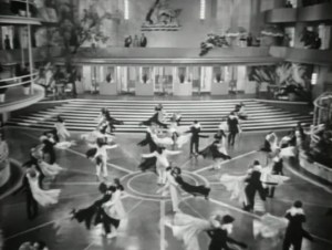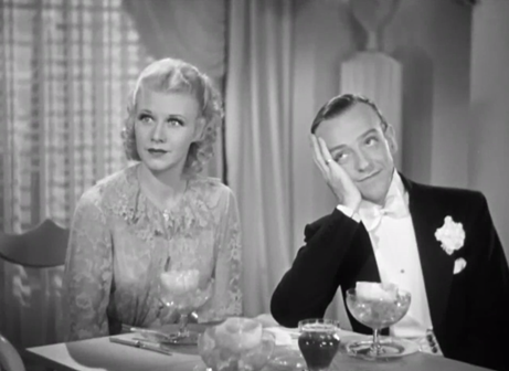 On a ship from France to England, lauded dancer ‘Guy Holden’ (Fred) comes into contact with “Mimi Glossop’ (Ginger), in what’s since been dubbed a ‘cute-meet’. Guy is first bemused, then besotted, Mimi initially irritated, then swayed. Trouble is, she’s married, although looking to be divorced from her total drip of a hubby. Her dippy yet bossy ‘Aunt Hortense’ (Alice Brady), an expert at getting into and out of marriages, has Mimi consult lawyer and former amour ‘Egbert Fitzgerald’ (Edward Everett Horton), who coincidentally (plot logic) is a close friend of Guy. Between multiple crossed wires, magic moments on assorted floors, giggly outbursts from Hortense, fussy fumblings from Egbert and assorted goof-in’s from a professional co-respondent, a quip-laden waiter and squadrons of instant hoofers, it’s pretty clear (to us) that things will work out for Guy and Mimi. Just a matter of getting there. With a smile.